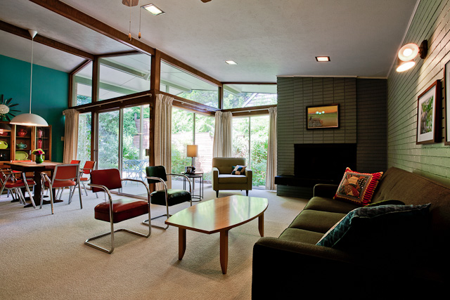 A friend sent me a link to this house with the simple words "I want" in the subject line. This midcentury beauty just looks so cool and shady, sprawled out there in Tanglewood's forest.